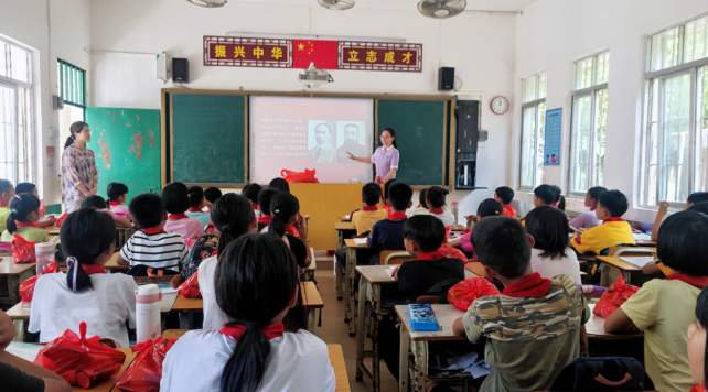 日前,阳春市纪委监委团支部带领志愿者前往松柏镇大圹岗小学开展“六一”儿童节“送党史进校门”活动,引导更多青少年儿童传承红色基因。