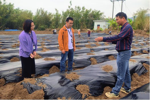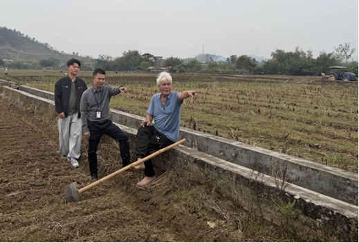 图:为阳春市河口镇纪委工作人员深入一线详细了解农户春耕备耕情况