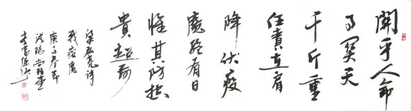 关乎人命事关天 任重千斤责在肩 降伏疫魔终有日 唯其防控贵超前