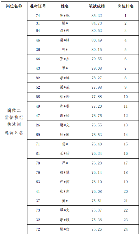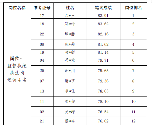 根据《关于阳江市纪委监委2026年公开选调公务员的通知》及工作安排,我委于2026年4月11日组织开展了选调公务员笔试。目前,笔试评分工作已完成,现将市纪委监委2026年公开选调公务员入围面试人员有关信息进行公布。