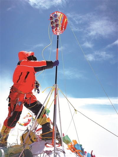 据介绍,此次测量综合运用了水准测量、三角高程交会测量、GNSS卫星测量、雪深雷达测量、重力测量、天文测量、卫星遥感等多种传统和现代测量技术。其中,在峰顶架设的GNSS接收机能通过卫星获取平面位置、峰顶雪面大地高等信息,是测量的重要一环。