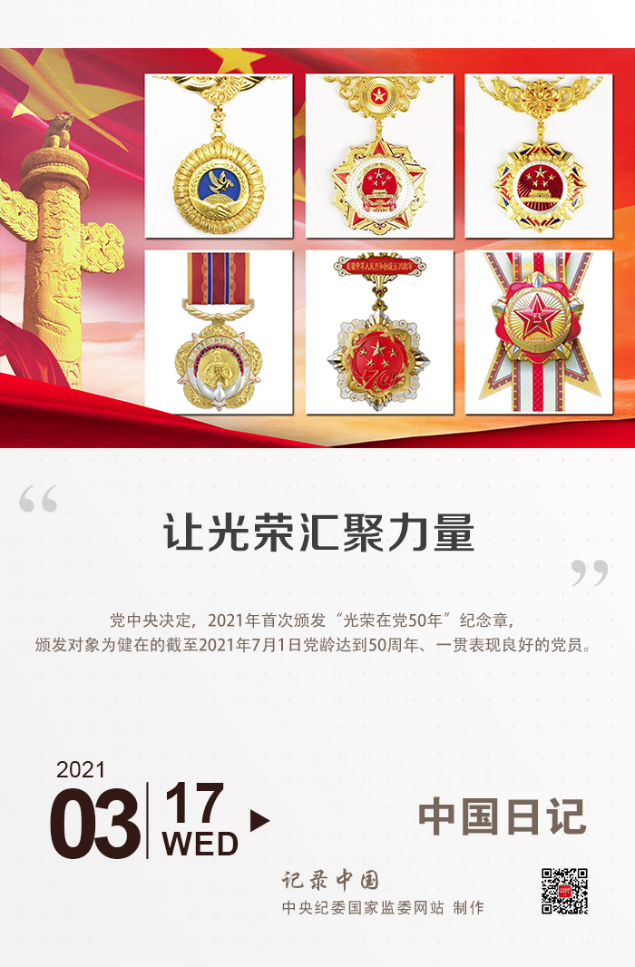 纪念章——除勋章、荣誉称号、表彰奖励外,党中央、国务院、中央军委可向参与特定时期、特定领域重大工作的个人颁发纪念章。(中央纪委国家监委网站 沈东方 文字 张寒 设计)