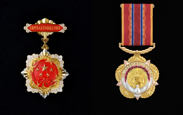 “庆祝中华人民共和国成立70周年”纪念章(左)和“中国人民志愿军抗美援朝出国作战70周年”纪念章(右)