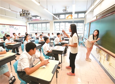 香港教育工作者联会黄楚标中学的学生正在上课。新华社记者 秦晴 摄