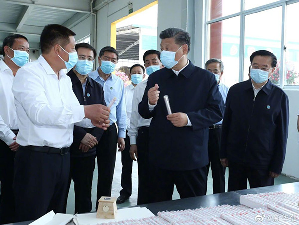 习近平总书记12日在河南省南阳市考察调研。当天下午,他首先来到医圣祠,了解“医圣”张仲景生平及其对中医药发展作出的贡献。随后,习近平来到南阳月季博览园、南阳药益宝艾草制品有限公司,考察当地依托月季、艾草等资源优势发展特色产业,带动群众就业等情况。(新华社 文字记者:张晓松、朱基钗;摄影记者:鞠鹏、王晔、燕雁)