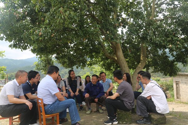 在97岁的老党员、抗美援朝老战士陈君直家门前的老树下,清远市连山县纪检监察干部围坐一起,零距离聆听陈老讲述革命故事,感受革命情怀。