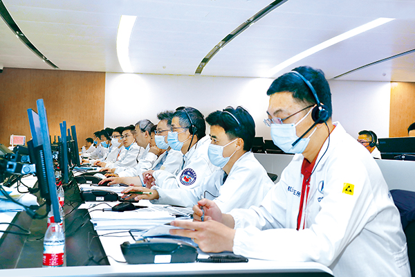 图为近日,工作人员在北京航天飞行控制中心对天问一号进行监测。(中国航天科技集团八院供图)