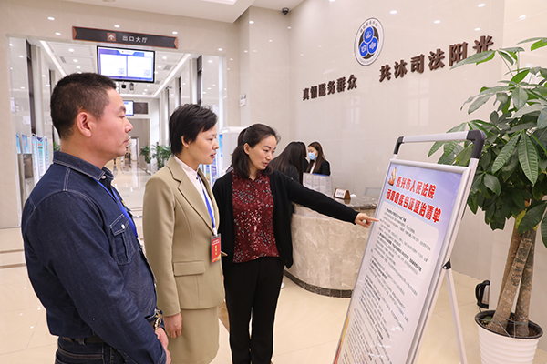 5月26日上午,江苏省泰兴市纪委监委第五派驻纪检监察组走进该市人民法院诉讼服务中心,详细了解政法队伍教育整顿、作风建设等方面情况。戴磊 摄