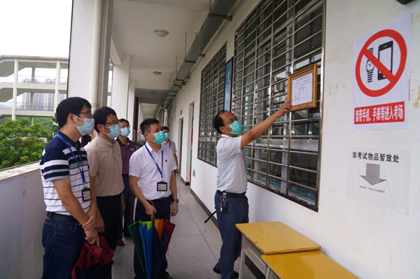 临近高考,福建省安溪县纪委监委用好“室组地”联动机制,对全县6个考点在疫情防控、考场设置、环境整治、电力供应、应急准备等方面进行“踩点”督查。图为督查组在该县第六中学考点进行检查。(福建省安溪县纪委监委 林伟彬 摄)