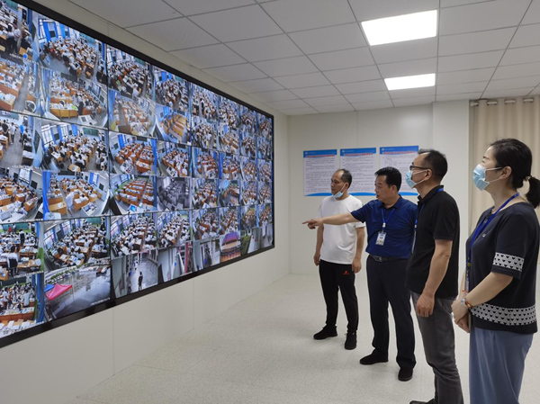 6月3日,武汉市江夏区纪委监委工作人员检查区实验高中考点网络监控设备情况,确保高考安全、平稳、有序进行。(武汉市江夏区纪委监委 周茜 摄)