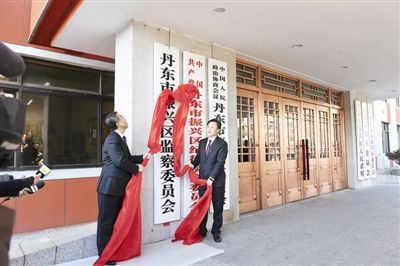 党的十九大吹响了深化国家监察体制改革试点工作的号角。2017年12月1日,辽宁省丹东市率先在全国成建制完成县级监察委员会组建工作。图为丹东市振兴区监察委员会揭牌仪式现场。于浩洋 摄