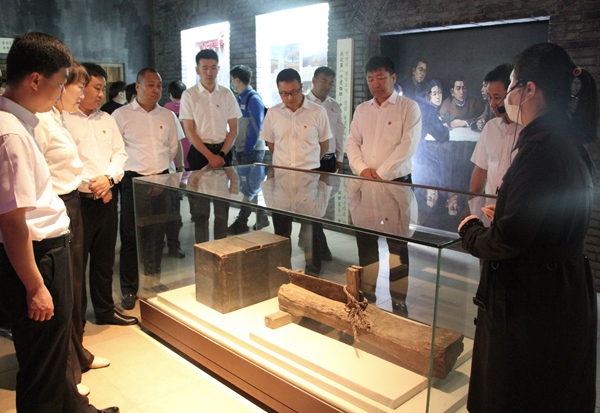 6月11日,吉林省延吉市纪委监委组织部分党员干部到延边博物馆参观延边历史展,缅怀革命先烈丰功伟绩。图为纪检监察干部站在展柜旁,神情肃穆地聆听原汪清县委书记金相和牺牲在敌人铡刀下的故事。(吉林省延吉市纪委监委 李梅花 摄)