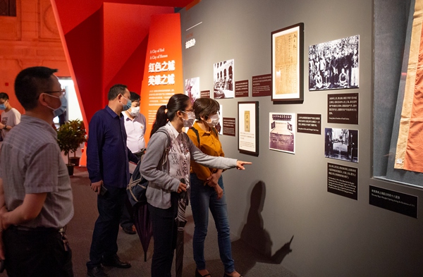 福建省龙岩市纪委监委组织党员干部赴龙岩市博物馆,参观“百年辉煌 闽西荣光——庆祝中国共产党成立100周年龙岩老区苏区成就展”,聆听革命故事,感受百年巨变。(福建省龙岩市纪委监委供 罗彬 摄)