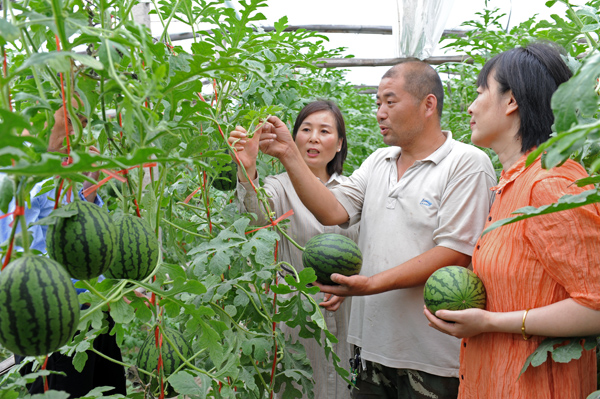 河南省漯河市源汇区纪委监委通过进村入户“察民情”,田间地头“问民生”,对各项惠民富民、促进共同富裕政策措施落实情况进行监督,对群众反映强烈的问题进行集中整治。图为近日,该区纪委监委干部向瓜农(中)了解相关情况。尤亚辉 摄