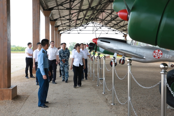 黑龙江省牡丹江市纪委监委组织党员干部来到人民空军东北老航校旧址展陈中心,参观“人民空军东北老航校历史展览”。图为纪检监察干部聆听讲解,查看1:1还原的飞机模型,感受人民空军从这里起飞的光辉历史。(黑龙江省牡丹江市纪委监委 甄忠绪 摄)