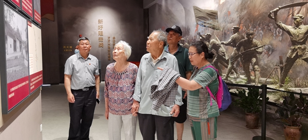 近日,一名老红军战士后代在家人的陪伴下,来到广西壮族自治区灌阳县湘江战役新圩阻击战酒海井红军纪念园,参观湘江战役新圩阻击战史实陈列展。(广西壮族自治区灌阳县纪委监委 曹增平 摄)