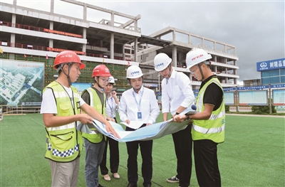海南省海口市纪委监委以全市作风整顿建设年为契机,督促相关部门和国有企业全面纠治不担当、不作为等问题,助力自贸港建设。图为该市纪检监察干部走访海口金融中心工程现场,了解有关党员干部履职尽责情况。 苏弼坤 摄