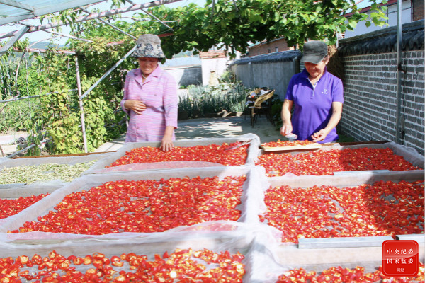 处暑至,农事忙,吉林省延吉市朝阳川镇八道村农民在自家院子晒辣椒、萝卜等农产品,脸上洋溢着收获的喜悦。(吉林省延吉市纪委监委 李梅花 摄)