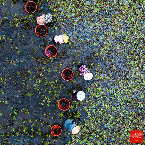 处暑到,采菱角。清风徐徐,波光粼粼,翠绿的菱角,菱香阵阵。叶片挨挨挤挤,湖光钗影,参差掩映,一幅水乡温婉而又鲜活的诗情画意。(福建省莆田市涵江区纪委监委供 范将 摄)