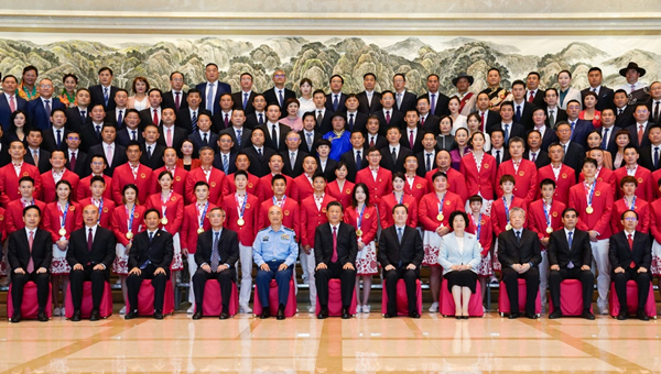 15日下午,习近平在陕西大会堂亲切会见了全国群众体育先进单位、先进个人代表和全国体育系统先进集体、先进工作者代表,东京奥运会中国体育代表团运动员和教练员代表等,并同大家合影留念。习近平同大家亲切交流,勉励他们奋力拼搏、再创佳绩。