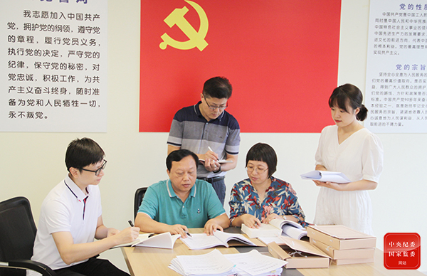 9月7日,海南省海口市纪委监委相关业务室同志研究分析具体个案中相关单位领导班子存在的突出问题,有针对性地提出加强党风廉政建设方面的意见建议。(海口市纪委监委供图)