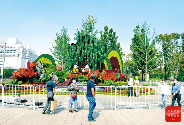 目前, 长安街沿线的10座立体花坛也在紧锣密鼓布置当中,每座花坛都有不同主题。建国门西北角“继往开来”花坛寓意新时代领航者吹响奋勇前进的嘹亮号角;东单东北角“强国有我”花坛朝气蓬勃,鲜明传递少年、青少年发出“请党放心,请祖国放心”的信心决心;西单西北角“乡村振兴”花坛在秋季丰收主景下翻开产业兴旺、生态宜居、生活富裕的新篇章;西单西南角“喜迎冬奥”花坛旨在弘扬奥运精神,在冰天雪地间展示中国魅力……从东长安街到西长安街,72年风雨兼程,九万里风鹏正举。10个主题既成为回望过往奋斗路的缩影,亦是眺望前方奋进路的展望。