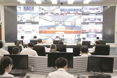 中央纪委国家监委驻海关总署纪检监察组在海关总署监控指挥中心召开专题视频会议,指导海关系统纪检机构强化对基层一线权力运行的监督制约。高远 摄