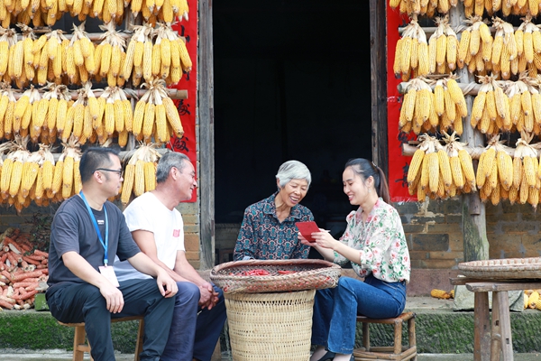 重庆市长寿区纪委监委聚焦养老社保领域截留克扣、虚报冒领群众养老钱、社保金等突出问题,深入基层走访,听民声、解难题。图为近日,该区纪检监察干部和村监察监督员在葛兰镇大坝村向群众了解社保金发放情况。彭俊华 摄