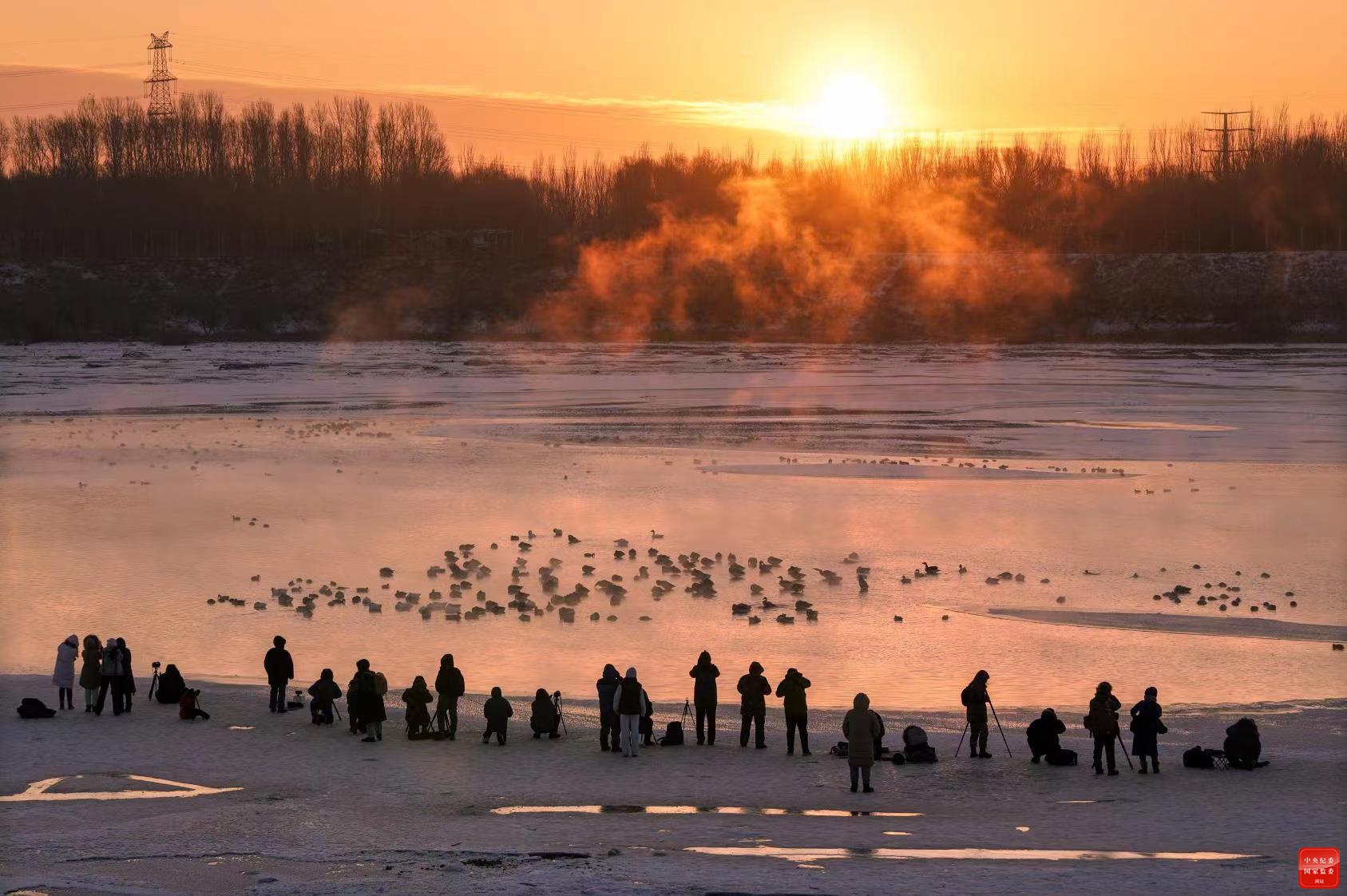 沈阳市位于东北亚鸟类迁徙路线上,鸟岛是候鸟南迁重要的栖息和中转地。图为摄影爱好者们冒着严寒,在冬日的晨辉中拍摄最后一批来自北方的候鸟在水面上嬉戏的“倩影”。(沈阳市纪委监委供 姜守凯 摄)