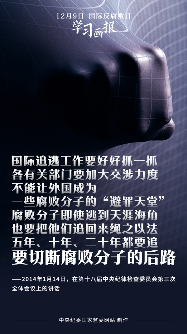 学习画报丨不管腐败分子逃到哪里 都要缉拿归案 绳之以法