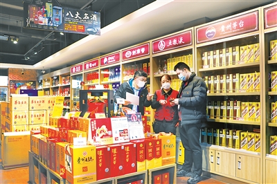 进入腊月以来,纪检监察机关组织监督检查组深入商场、酒店等开展专项察访,严肃查处违规收送礼品礼金等顶风违纪行为。图为春节前夕,山东省威海市文登区纪委监委工作人员正在某烟酒专柜对违规收送名贵礼品行为进行摸排。姜万兴 摄