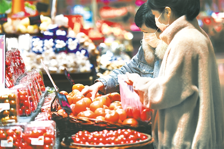 河南省郑州市近日投放猪肉、鸡蛋、蔬菜等大量物资,为市民就地过年提供充足物资保障。图为1月25日,市民在河南省郑州市金水区一家超市内选购蔬菜。新华社记者 张浩然 摄