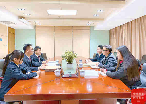 广西壮族自治区纪委监委着力构建促进纪法贯通、法法衔接的制度机制,构建了日常沟通协调工作机制,切实提高职务犯罪案件办理的质量和效率。图为近日,南宁市纪委监委干部与南宁市人民检察院干部召开论证会,就某职务犯罪案件中的法律适用问题进行商讨。关铃 摄