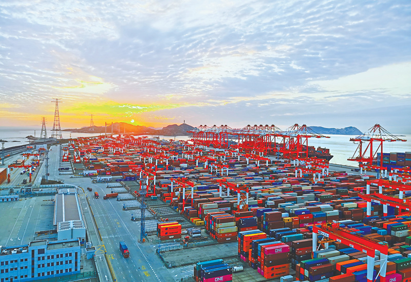 面对复杂严峻的国际环境,我国多措并举保障产业链供应链稳定。图为上海向海而兴打造的国际航运中心“升级版”洋山港。新华社发