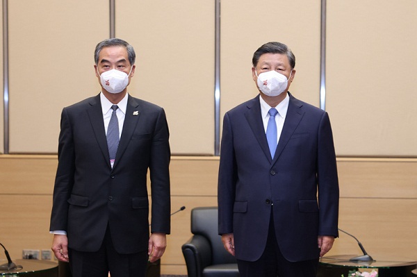 习近平指出,5年来,在中央坚定支持下,你忠诚履行行政长官的宪制责任,坚定贯彻落实“一国两制”方针和基本法,带领特别行政区政府依法施政,团结社会各界人士止暴制乱,全力抗击新冠肺炎疫情,积极融入国家发展大局,为维护国家主权、安全、发展利益和香港繁荣稳定,落实“爱国者治港”原则,推动香港局势实现由乱到治重大转折,做了大量艰苦工作,作出重要贡献,展现了勇于担当的精神。对于你这5年来的工作,中央是充分肯定的。