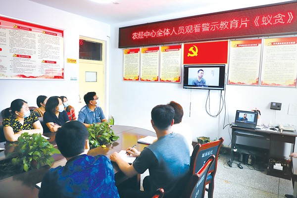 山西省河津市农村经济事务中心全体人员观看许世平严重违纪违法案例警示教育片《蚁贪》,开展警示教育活动。