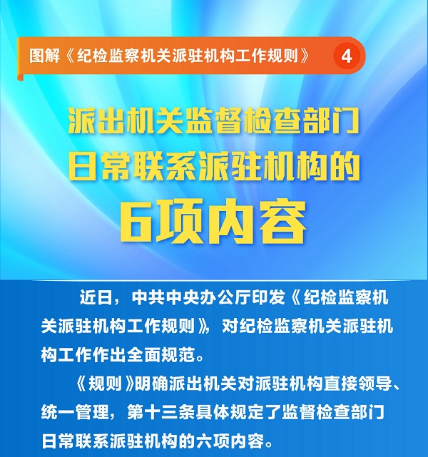 图解《纪检监察机关派驻机构工作规则》④ 派出机关监督检查部门日常联系派驻机构的6项内容