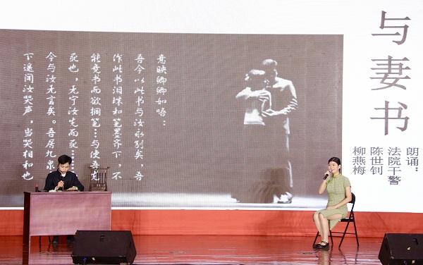 图:阳西法院干警陈世钊、柳燕梅情景朗诵《与妻书》。阳江日报社 梁园 摄