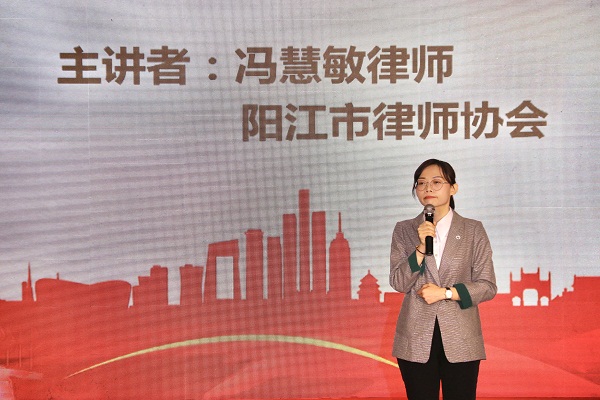 图:市律师协会冯慧敏讲述《优良家风的基石——民法典》。阳江日报社 梁园 摄