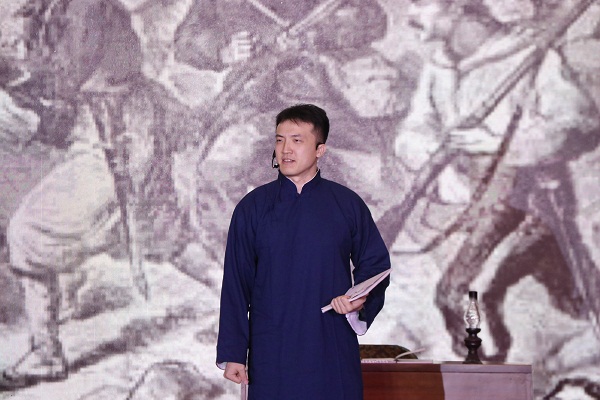 图:市人大常委会法工委马草原朗诵《梁启超家书》经典篇章。阳江日报社 梁园 摄