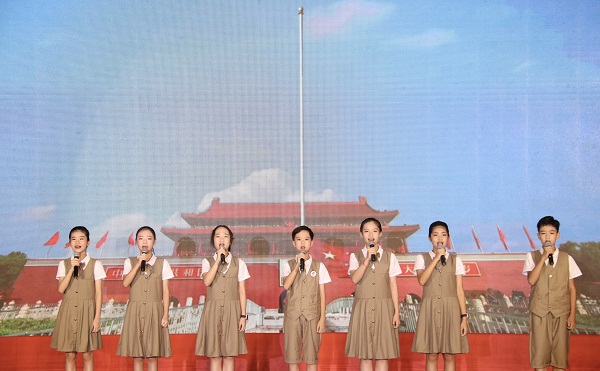 图:市朗诵艺术协会小朋友朗诵诗歌《国歌颂》。阳江日报社 梁园 摄