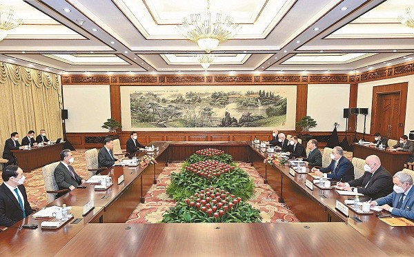 12月21日,中共中央总书记、国家主席习近平在钓鱼台国宾馆会见应中国共产党邀请访华的俄罗斯统一俄罗斯党主席梅德韦杰夫。