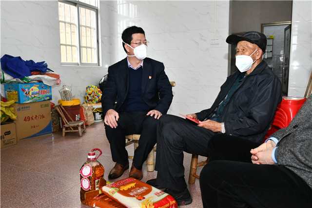 在陂面镇朗仔村委会果子园村,李成都一行来到91岁高龄的唐明壬的家中,与这位老党员促膝交谈,悉心了解他最近的身体健康状况、基本生活需求和医疗保障情况,感谢他一直以来发挥党员先锋模范作用支持农村基层建设工作,嘱咐他要注意保重身体和防寒保暖,并叮嘱有关部门和当地干部要时刻关心老党员的生活起居,用心用情做好服务保障工作。