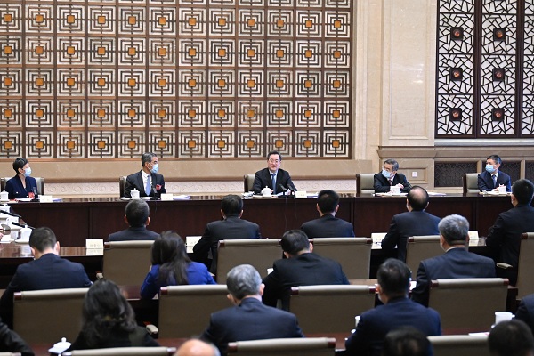 3月6日,中共中央政治局常委赵乐际看望出席全国政协十四届一次会议的民革、台盟、台联界委员并参加讨论。 新华社记者 岳月伟 摄