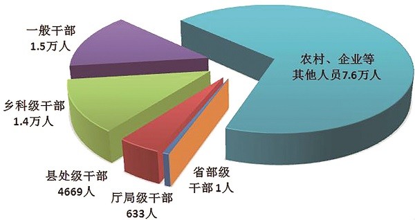 2023年第一季度,全国纪检监察机关共接收信访举报77.6万件次,其中检举控告类信访举报23.1万件次。处置问题线索35.8万件,谈话函询7.5万件次,立案13.8万件,处分11.1万人(其中党纪处分9万人、政务处分3万人)。处分省部级干部1人,厅局级干部633人,县处级干部4669人,乡科级干部1.4万人,一般干部1.5万人,农村、企业等其他人员7.6万人。