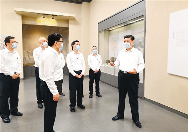 习近平心系黄河流域生态和文物保护工作。5月16日下午,在前往陕西途中,习近平走下列车,在山西省委书记蓝佛安、省长金湘军陪同下,先后考察了运城博物馆和运城盐湖。运城历史悠久,文脉厚重,因“盐运之城”得名。在博物馆,习近平参观“华夏寻根”“馆藏珍品”“盬盐春秋”等展陈,详细了解运城有关人类起源和中华文明早期历史发展等,并听取运城盐湖的形成发展和历史沿革介绍。习近平强调,博物馆有很多宝贵文物甚至“国宝”,它们实证了我国百万年的人类史、一万年的文化史、五千多年的文明史,要深入实施中华文明探源工程,把中国文明历史研究引向深入。要认真贯彻落实党中央关于坚持保护第一、加强管理、挖掘价值、有效利用、让文物活起来的工作要求,全面提升文物保护利用和文化遗产保护传承水平。
