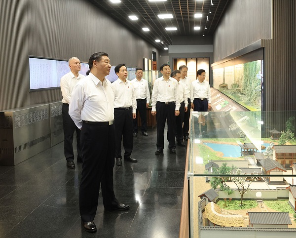 习近平十分关心汉江流域历史文化传承和生态保护。7月29日,在返京途中,习近平走下列车,在陕西省委书记赵一德、省长赵刚陪同下,来到汉中市考察。习近平参观汉中市博物馆有关历史文物展陈,了解汉中历史文化、文物保护情况。他指出,文物承载灿烂文明,传承历史文化,维系民族精神。要发挥好博物馆保护、传承、研究、展示人类文明的重要作用,守护好中华文脉,并让文物活起来,扩大中华文化的影响力。汉中藤编等非物质文化遗产久负盛名,要发展壮大特色产业,更好带动群众增收致富。离开博物馆时,附近的乡亲们围拢过来热情欢呼“总书记好”。习近平亲切地对大家说,我在2008年汶川大地震抗震救灾时来过汉中,这些年一直牵挂着这里。这次来,看到这里发展变化很大,城市井然有序,很欣慰。他祝愿大家工作好、生活好、家庭幸福。