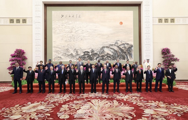 10月18日上午,国家主席习近平在北京人民大会堂出席第三届“一带一路”国际合作高峰论坛开幕式并发表题为《建设开放包容、互联互通、共同发展的世界》的主旨演讲。这是会前,习近平同出席高峰论坛的外国国家元首、政府首脑和国际组织负责人等国际贵宾集体合影。新华社记者 黄敬文 摄
