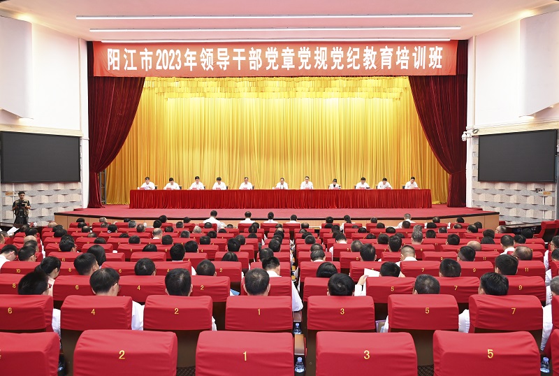 图:9月5日,市委举办阳江市2023年领导干部党章党规党纪教育培训班,市委、市纪委主要领导带头为全体学员分别作开班动员讲话和专题辅导报告。