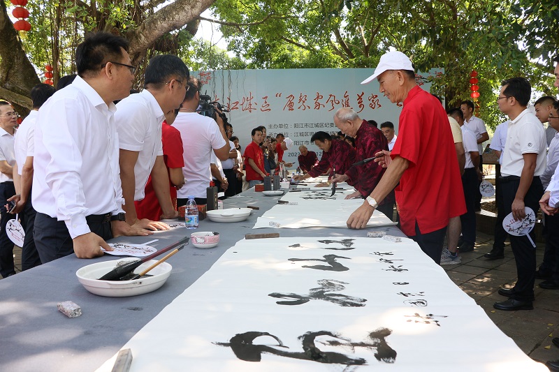 图:江城区在国画大师关山月故乡埠场镇果园村举办“廉洁家风进万家”书法展暨现场挥毫活动。
